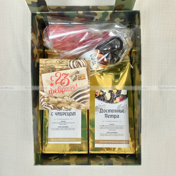 Весь товар экологически чистый, сертифицированный и высокого качества (соответствует заявленным характеристикам, описанию, фотографиям). Вы можете купить или заказать «Набор к 23 февраля "Камуфляж"» в магазине чая и кофе «Five o’clock» г. Нижний Новгород. Мы также можем собрать для вас подарок в красивой упаковке или чайный букет.